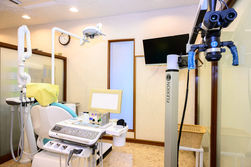 マイクロスコープ(歯科用顕微鏡)を導入しています。肉眼では見えない細かな部分を最大20倍以上に拡大して確認できるため、より精密で確実な治療が可能になります。