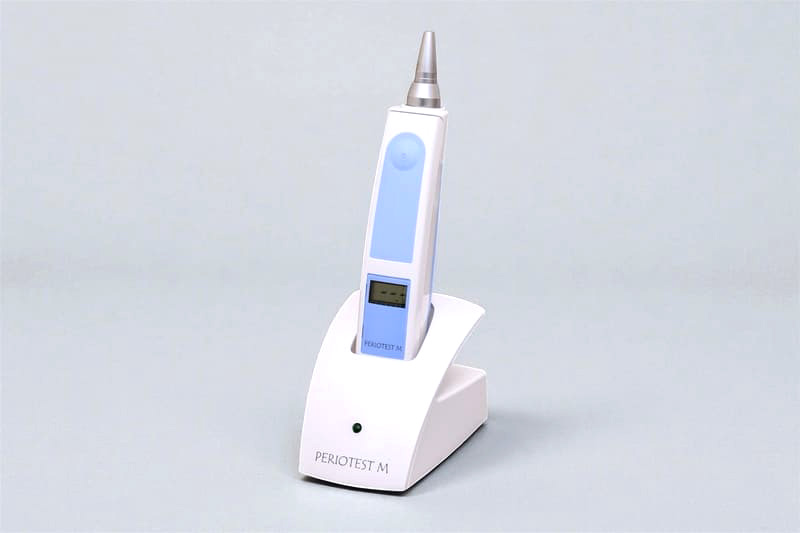歯周病の診断やインプラント治療の際に動揺度検査機(ペリオテストM)を使用しています。歯やインプラントの安定性を数値で客観的に測定できる機器で、目視や触診だけでは判断しにくい微細な動揺も正確に把握できるため、より精密な診断と治療計画の立案が可能になります。