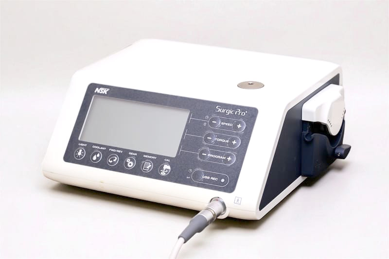 インプラント治療の際にインプラント用モーターシステムを使用しています。インプラントを埋め込む際のドリリング速度やトルク(回転力)を精密にコントロールできる機器で、骨の状態に合わせて最適な条件で治療できるため、より安全で確実なインプラント治療が可能になります。