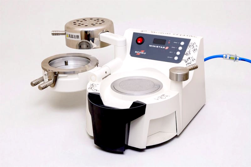 歯科用マウスピースや仮歯の製作するときに歯科技工用成型器(ミニスターS)を使用しています。患者さんの歯型に合わせて、熱と圧力で樹脂シートを正確に成型できる機器で、院内で精密なマウスピースや仮歯を製作できるため、より適合性の高い装置の提供が可能になります。