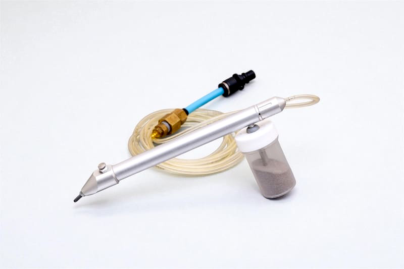 歯の表面処理やセメントの除去、矯正治療後のブラケットのクリーニングに歯科用アルミニウムサンドブラスターを使用しています。微細なアルミナ粒子を高圧で吹き付けることで、歯の表面を傷つけずに汚れや残留物を効果的に除去できる機器で、より清潔で精密な治療が可能になります。