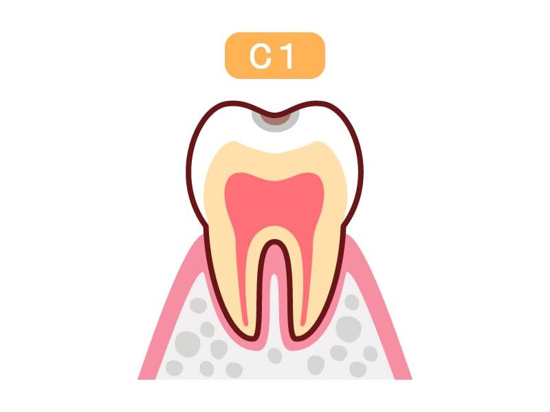 歯の表面(エナメル質)に小さな穴が開いた状態。痛みはほとんどありません。