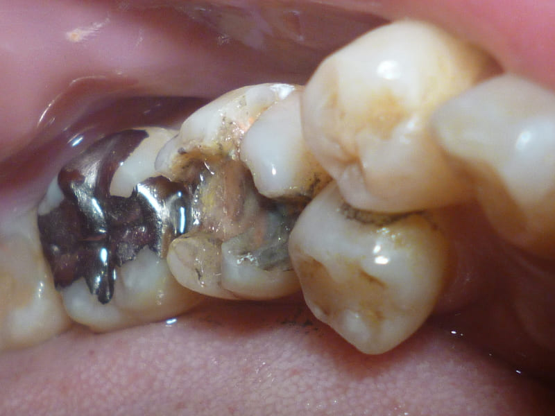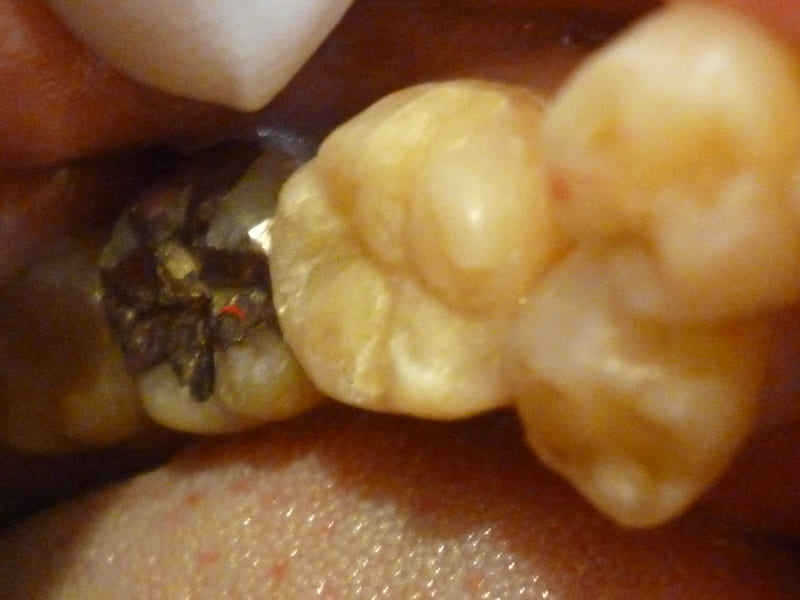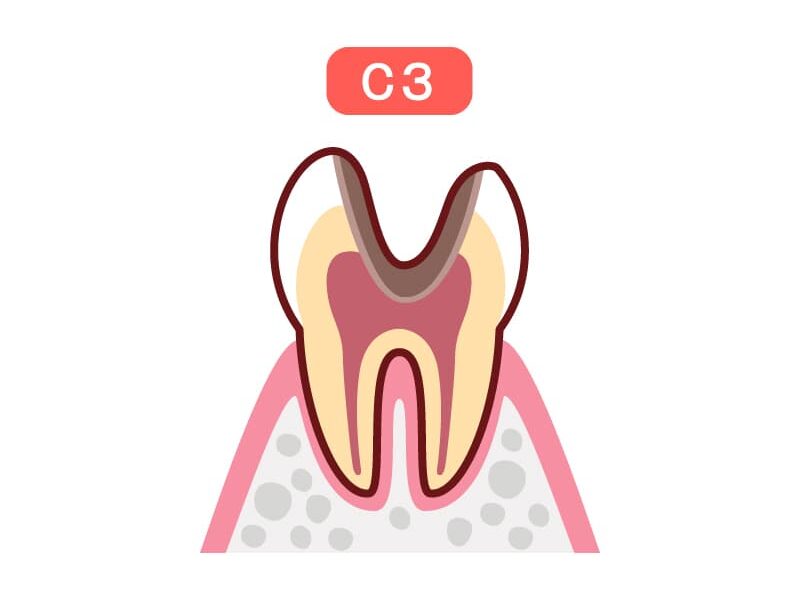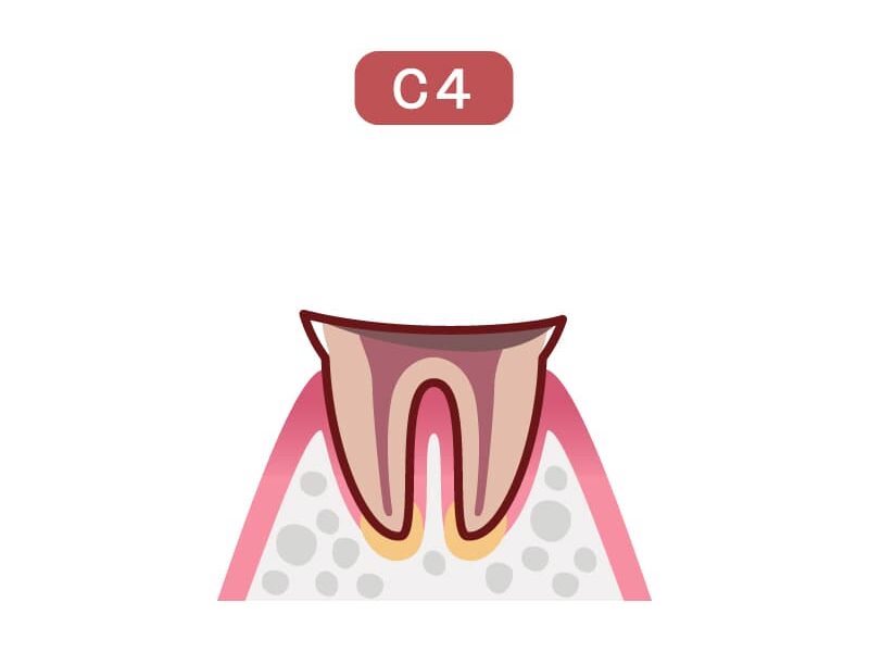 歯の上部がほとんど失われた状態。痛みがなくなることもありますが、放置すると周囲に影響します。