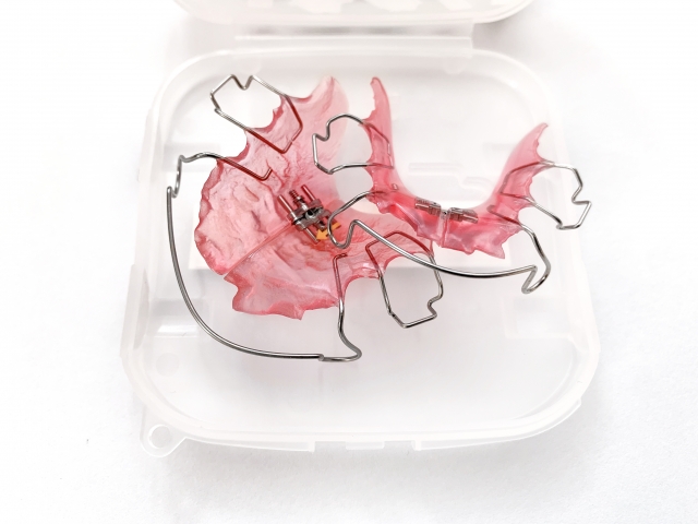 歯列育形成は、プレート(取り外し可能な装置)を使って、乳歯の段階から歯を正しい位置に誘導する矯正治療です。
